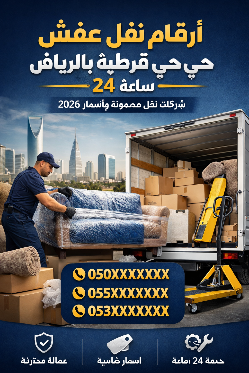 أرقام نقل عفش حي قرطبة بالرياض 24 ساعة | شركات نقل مضمونة وأسعار 2026