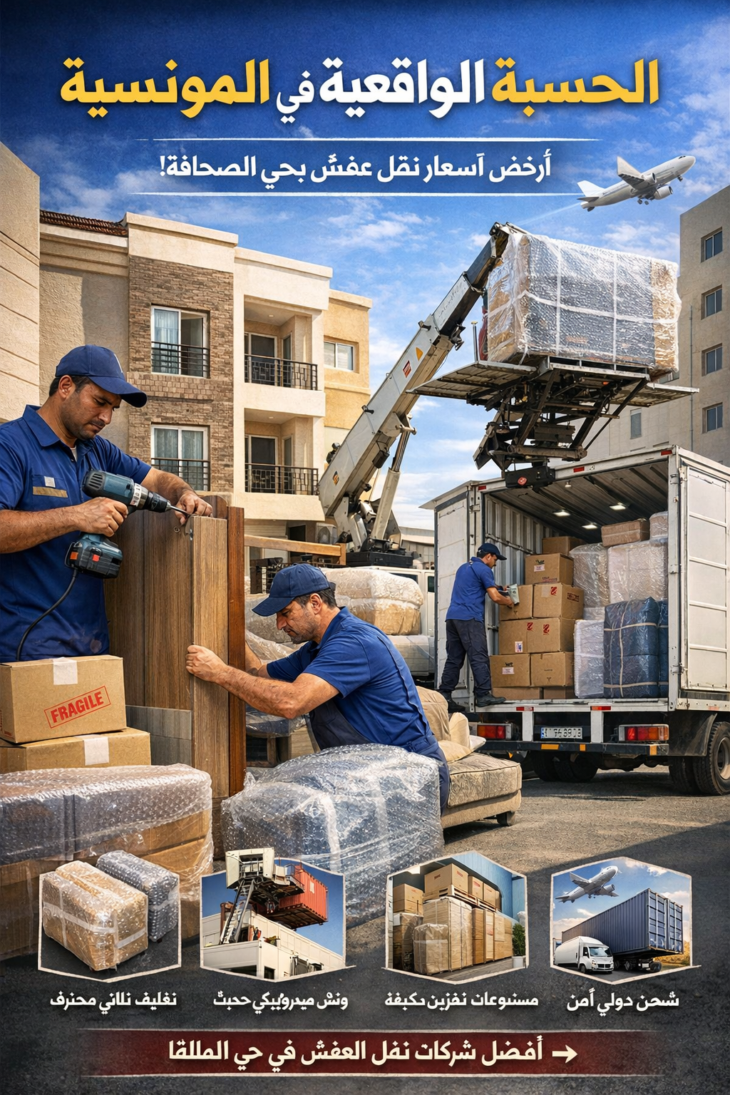 تكلفة نقل عفش شقة في حي المونسية بالرياض بالتفصيل مع عرض سعر فوري
